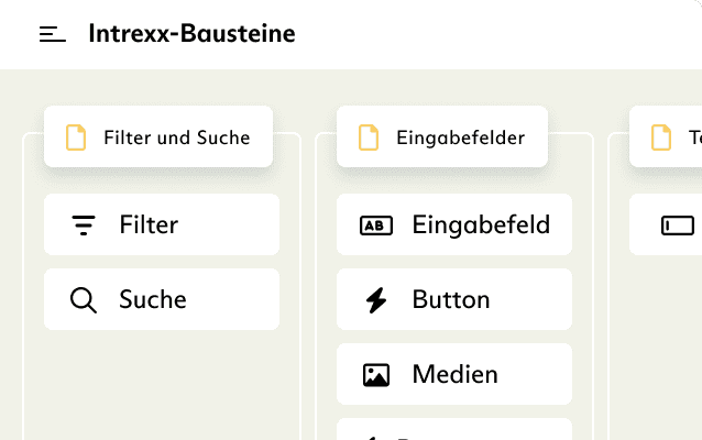 Intrexx beinhaltet Bausteine für Eingaben, Textbearbeitung, Datenstrukturen, Prozesse und vieles mehr. Sie können sofort loslegen und Anwendungen nach Ihren Bedürfnissen entwickeln – schnell, effizient und sicher!