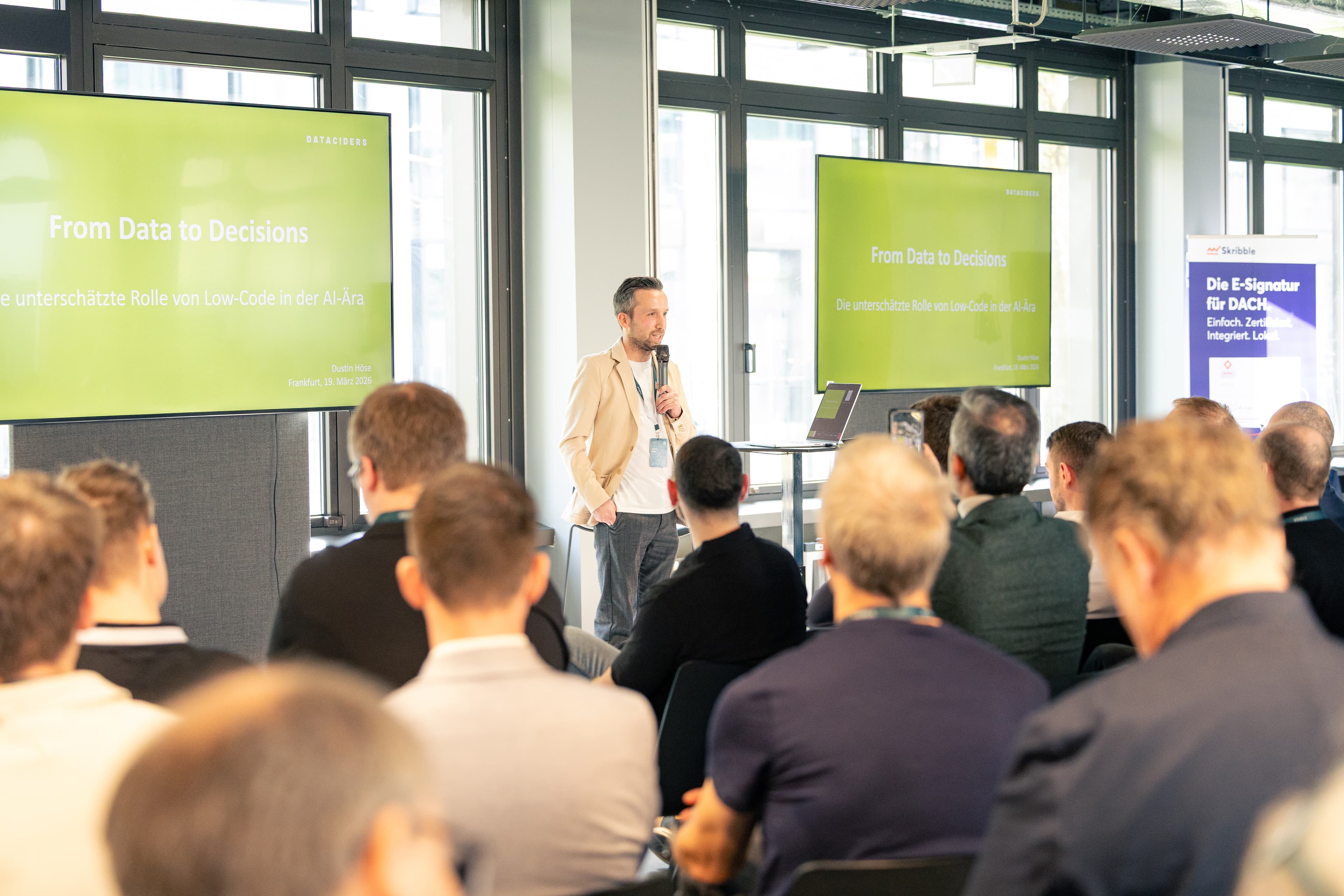 Viele AI-Initiativen scheitern nicht an Technologie, sondern an einer fehlenden oder nicht umsetzbaren Datenstrategie. Dustin Höse zeigte, warum Low-Code der Hebel ist, um Daten strukturiert in wirksame Anwendungen zu überführen.