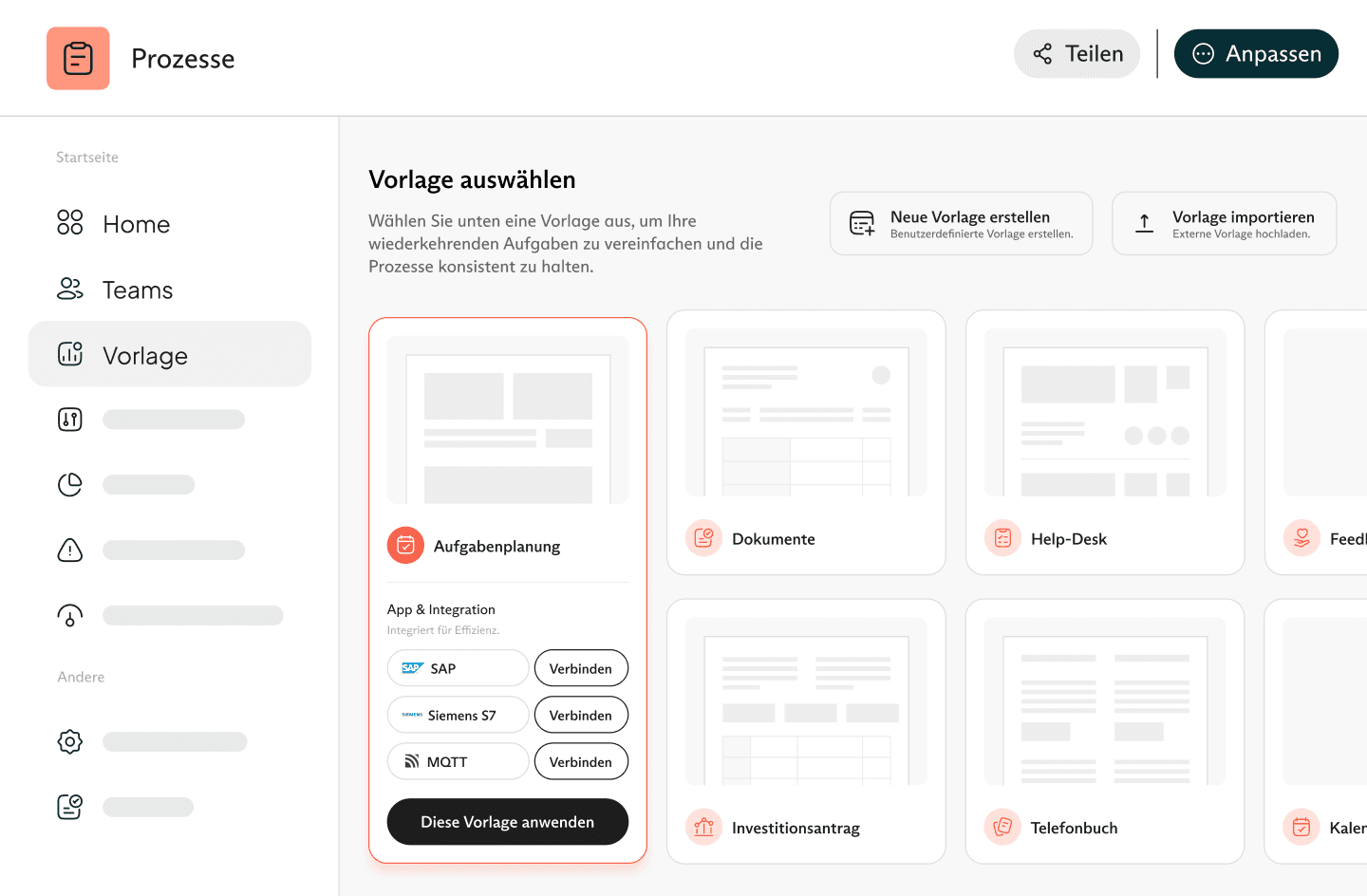 Erstellen Sie Vorlagen für wiederkehrende Prozesse